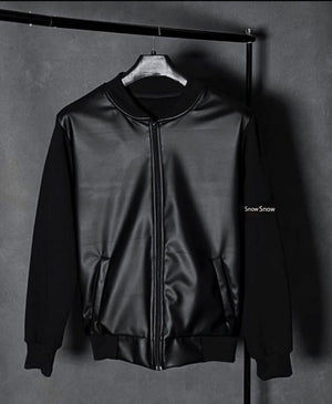 Product details of Black Trendy Jacket for Men - Zipper with Pockets - Comfortable and Regular Fit Faux Leather - Stylish and Versatile